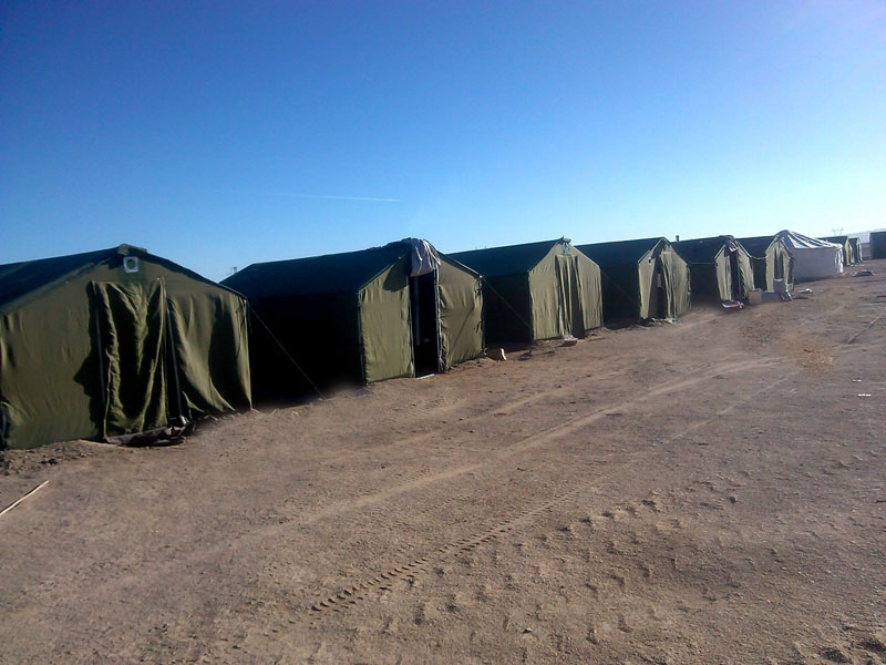 缺水、缺电、缺信号……这是先遣部队入场时的困境。方圆200余公里的无人区加深了驻地的寂静。66.9公里的战线里,茫茫戈壁滩上布满粗砂、砾石,踏在 上面,沙沙作响,一片片盐碱地横卧在上面。没有植被、没有飞禽,巨大的温差、强烈的辐射、干燥的环境……目睹此景,我们才真正领会到“穷荒绝漠鸟不飞,万 碛千山梦犹懒”的意境了。裹着棉大衣、穿上长筒鞋,测量仪器旁的他们在这里显得十分瘦弱,黝黑的脸颊,开裂的嘴唇,身后留下的脚印迅速被风沙掩盖。昼夜不 息的打井机械将探头一直深入到低下150米处,75立方每小时的水流让他们足足兴奋了一个夜晚。紧张有序的试验设备调试,时刻准备着迎检……此刻,大家心 中最温暖的地方是工地上那个昼夜生着炉子的小家,还有在家同事提前准备好的一杯热水。根据张总经理对格库项目信誉评价“保二争一”的指示,参建员工迅速行 动,跑步进场,率先解决队伍吃住问题,在较短的时间内确定了项目部、拌合站等位置,并全面组织驻地开工建设和便道修建,为来年施工大干做好准备。