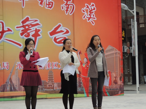 三时许,在南门社区舞蹈队的舞蹈“鼓动天地”中拉开了序幕,南门社区书记张霞致词,并祝贺区文化馆的搬迁,男、女声独唱“咱老百姓”、“欢聚一堂”“祖国 你好”等,唱出了老百姓的心声,舞蹈“陪你去看草原”、“醉美天下”“卓玛”等让观众看的如痴如醉,由书记张霞领队的朗诵“南门社区我们共同的家”让社区 的居民看到了明天,看到了希望。