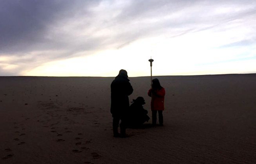 他们说,自己是幸运的。曾经亲眼目睹了金色的霞光洒在胡杨明黄的树叶上,点点碎金,斑驳中昭示着生命的光芒,这是对戈壁美景的剪影,也是梦里景致。他们还 说,这也是伤感的。落日的余晖絪缊着胡杨林,那些虽已枯败的枝桠却昂然直指苍穹,悲壮而不息,孤单且寂寞,这与格库项目的环境如出一辙……66.9公里的 战线上,在他们眼前的看不到尽头的串串脚印,以及那猝不及防的漫天黄沙。一杯热水、一个火炉、一间不透风的屋子,这是他们的最大的期盼,仅此而已!