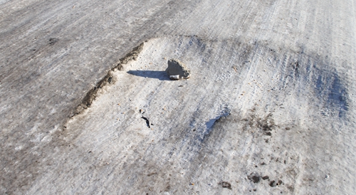 据六号村雇用的质量监督人邢玉良讲:由于这段水泥路工程设计要求白灰土为12%,而施工方实际用量不足2%,整段路仅用了两翻斗车的白灰。据六号村民反映:更离谱的 是,去年11月末一天临近傍晚,长岭县交通局和施工单位共计7辆车到路面走马观花进行验收。而此间,整个施工的水泥路面随处可见断裂、爆皮、混凝土石子裸 露等质量问题。最让人不解的是:这次验收竟然“合格”!路面塌陷深浅不一,竟然在工程质检这道门蒙混过关。村民自测,路面塌陷最深的地方有10厘米。