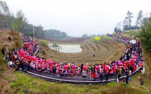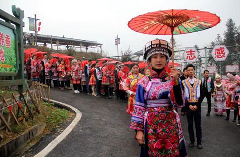 兴文县是四川最大的苗族聚居县,全县48万人口有苗族同胞5.07万人。本次的苗族集体婚礼以“过上好日子”为主题,来自兴文县的33对新人身着盛装,举办甜蜜的集体婚礼,非常完整地展示了苗族同胞的原生态婚俗文化。