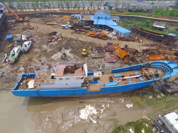 据调查,正在从事拆船业务的温州荣昌造船股份有限公司、瑞安市隆山船舶修造厂、温州市洞头鹿西船厂、温州市洞头鹿港船舶修造厂、鹿城万顺船舶修造厂等企业都有不同程度的存在环境违法的乱象。这些企业有的只有渔船修造的手续,根本没有拆船审批手续;有的只经工商登记,根本没有任何什么环评和安全生产许可手续;有的离居民区不足百米、几公里就是海水养殖区,更有甚者离学校也只有百余米,根本达不到拆船环保评估的要求,更不要说有什么污水处理设施了。